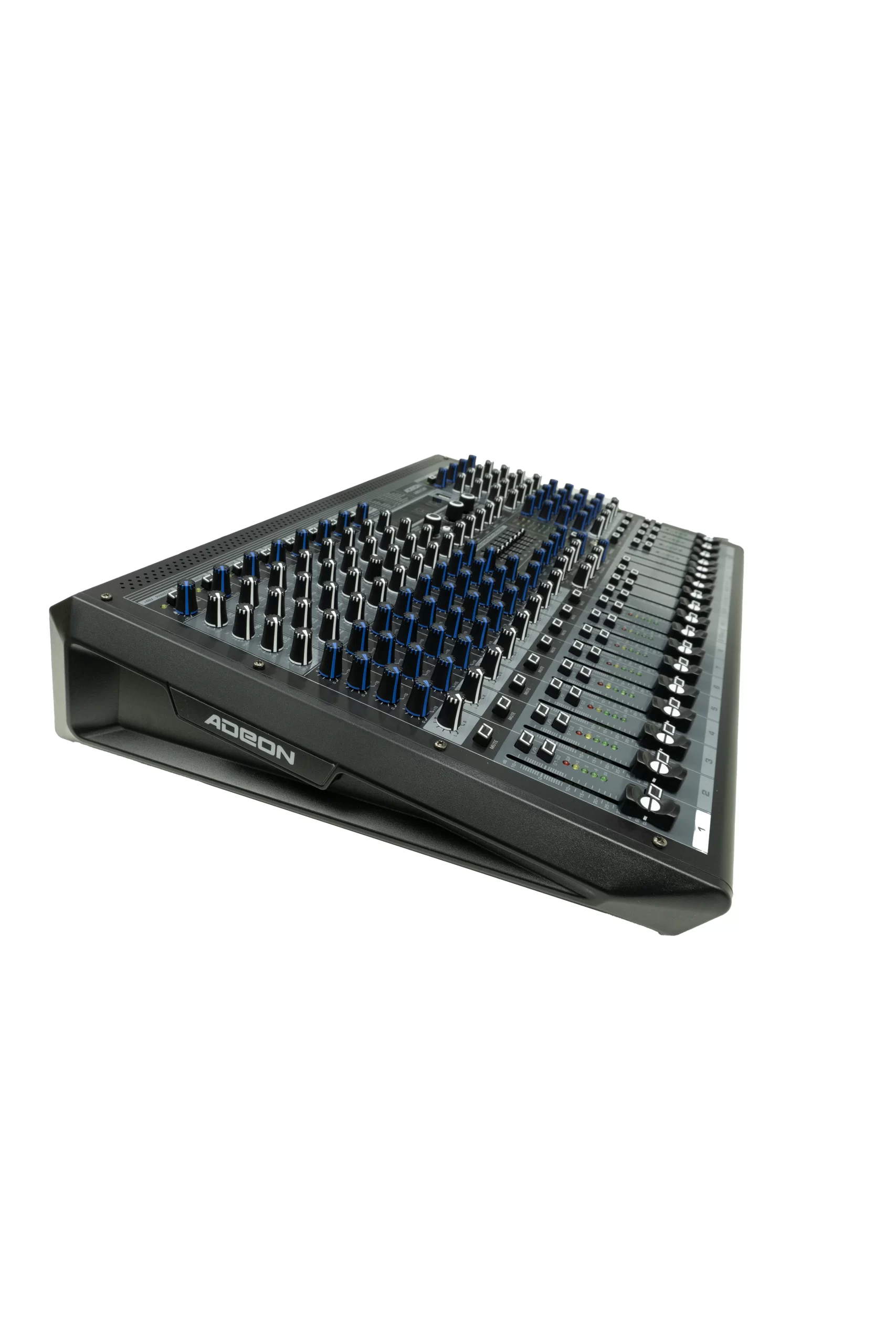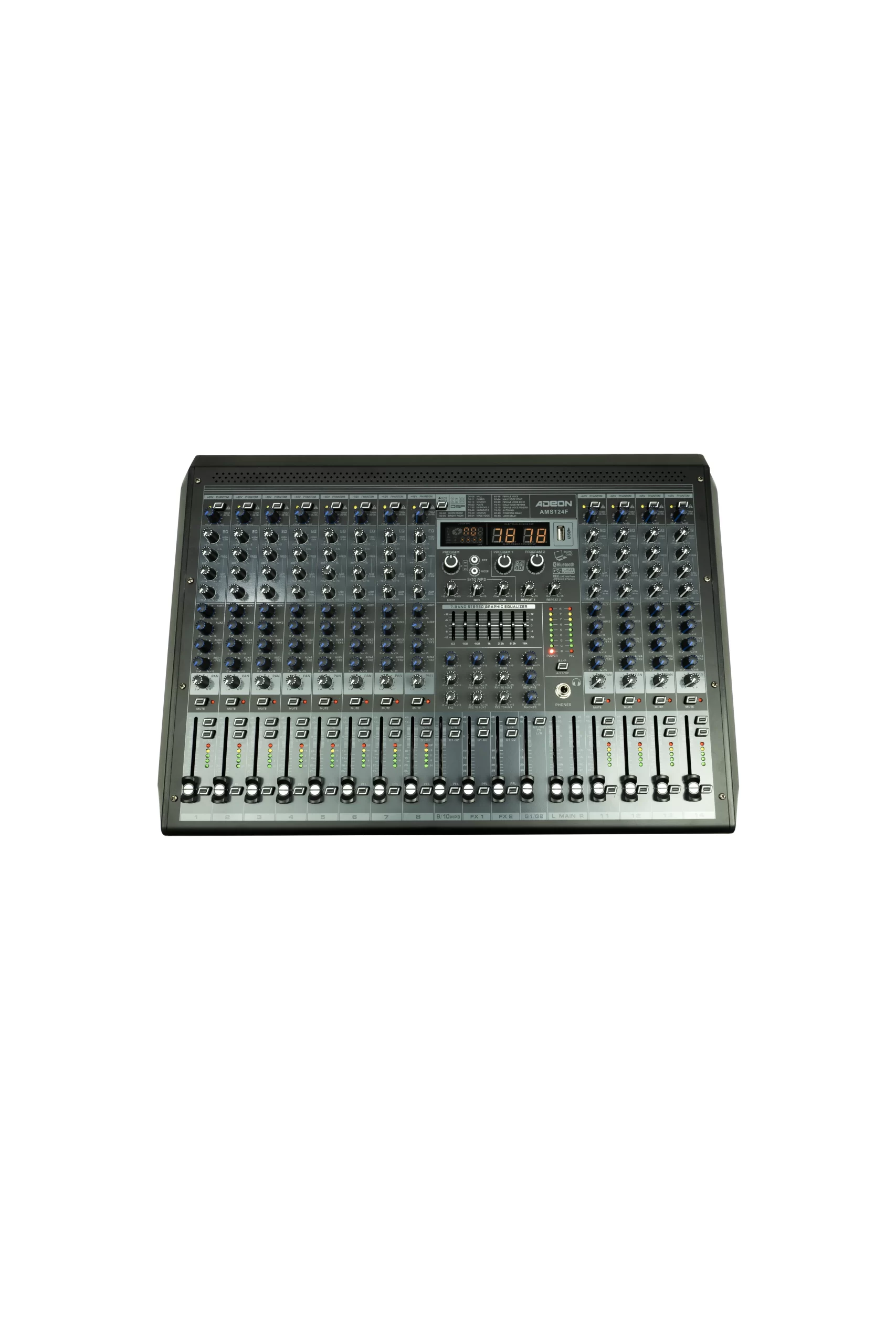 The AMS 124F is a professional-grade analog audio mixer designed for live sound reinforcement, recording, and multi-input audio applications. It combines multiple mono and stereo inputs with built-in effects and flexible routing, making it suitable for small to medium bands, venues, or multimedia setups. Key features include extensive EQ control, digital effects, graphic EQ, MP3 playback with Bluetooth, USB connectivity for PC audio, and per-channel monitoring controls.