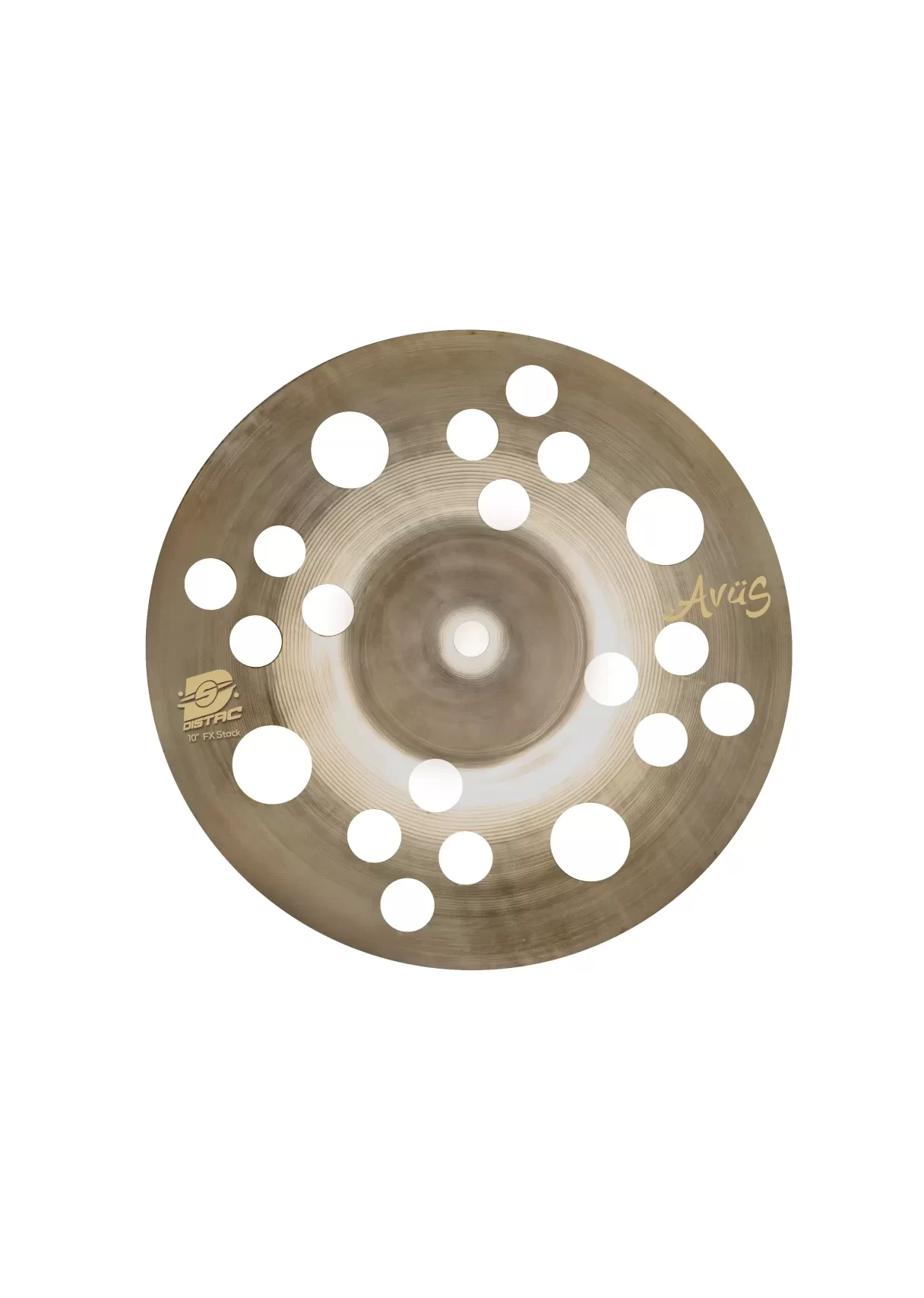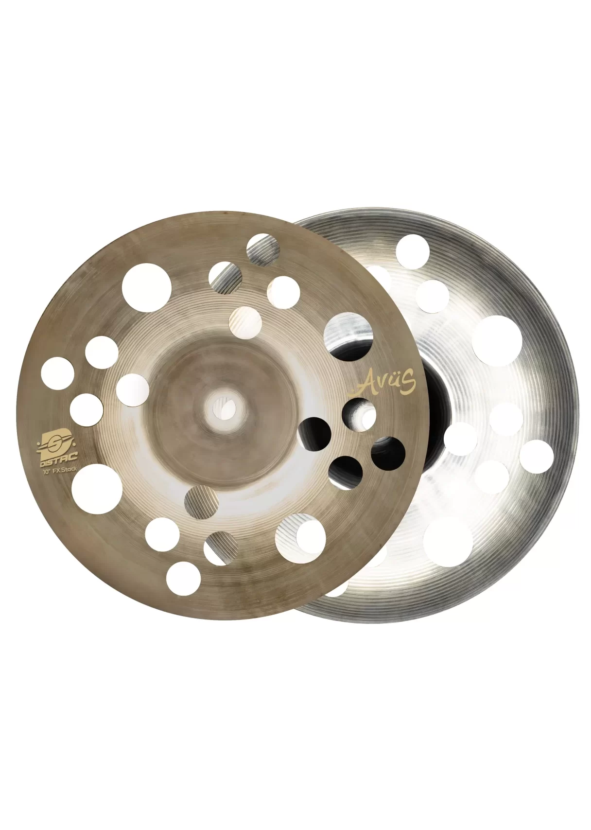 The DISTACK 10″ Stack – B20 Special FX Stack is a dedicated effects stack cymbal crafted from professional-grade B20 bronze alloy, designed specifically for stacking applications and creative sound design rather than traditional crash or ride roles. With its 10″ size and FX-oriented voice, it delivers a quick, punchy attack with short sustain and enhanced articulation when stacked. The “special” design—with a thicker bottom cymbal acting as a stable foundation and a thinner or treated upper cymbal for the accent “smack”—produces vibrant, expressive trash and effect tones ideal for modern, experimental, and rhythmic accents in both live and studio contexts.