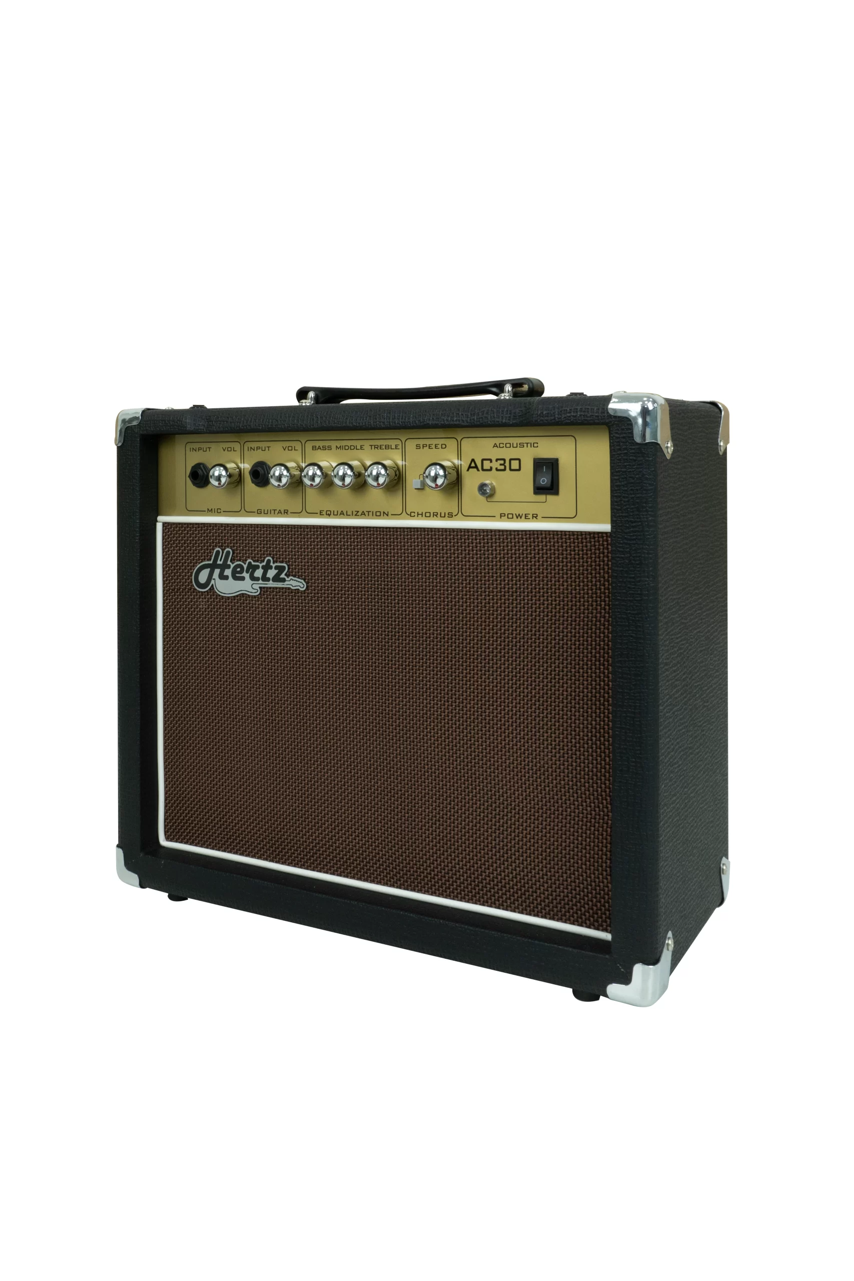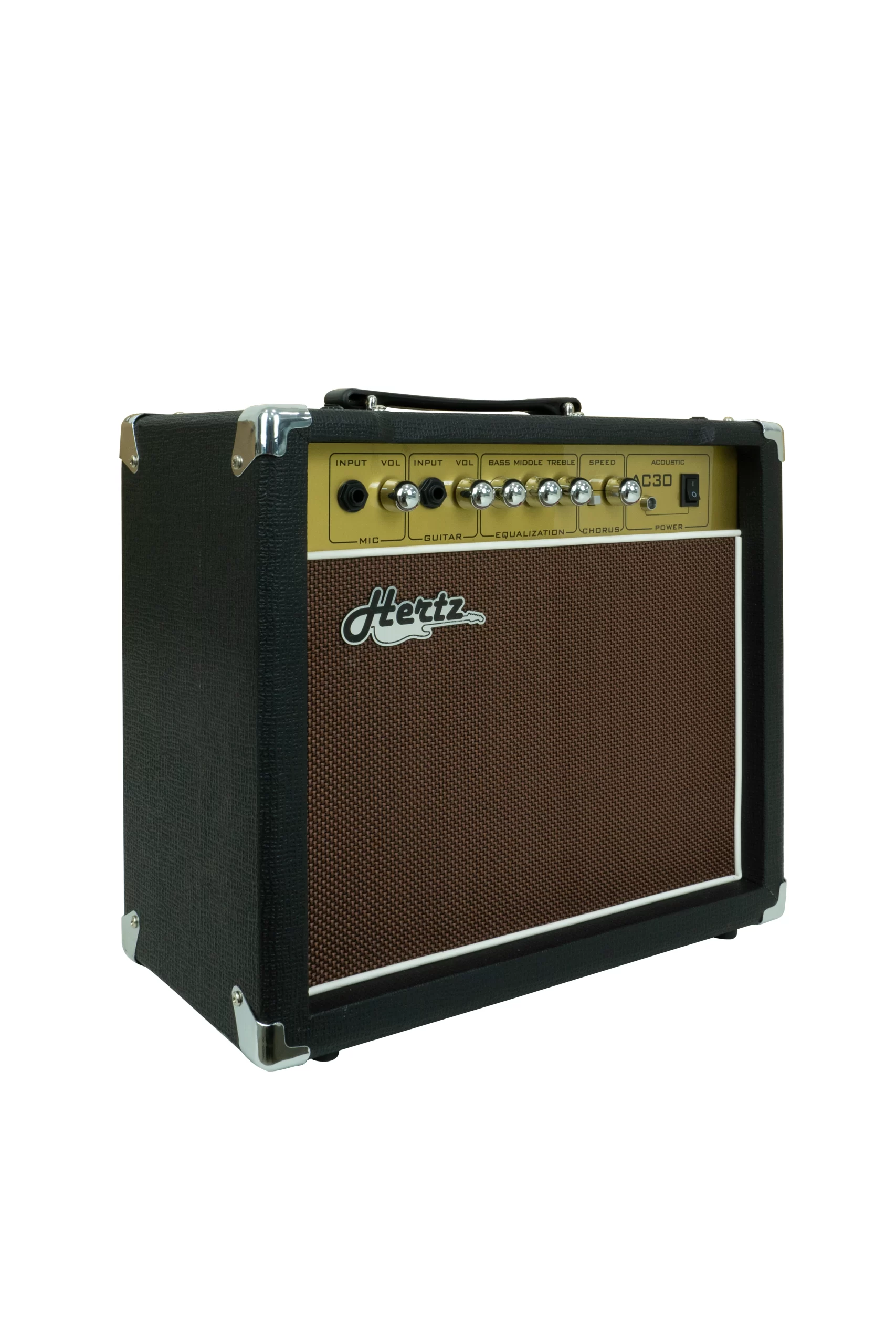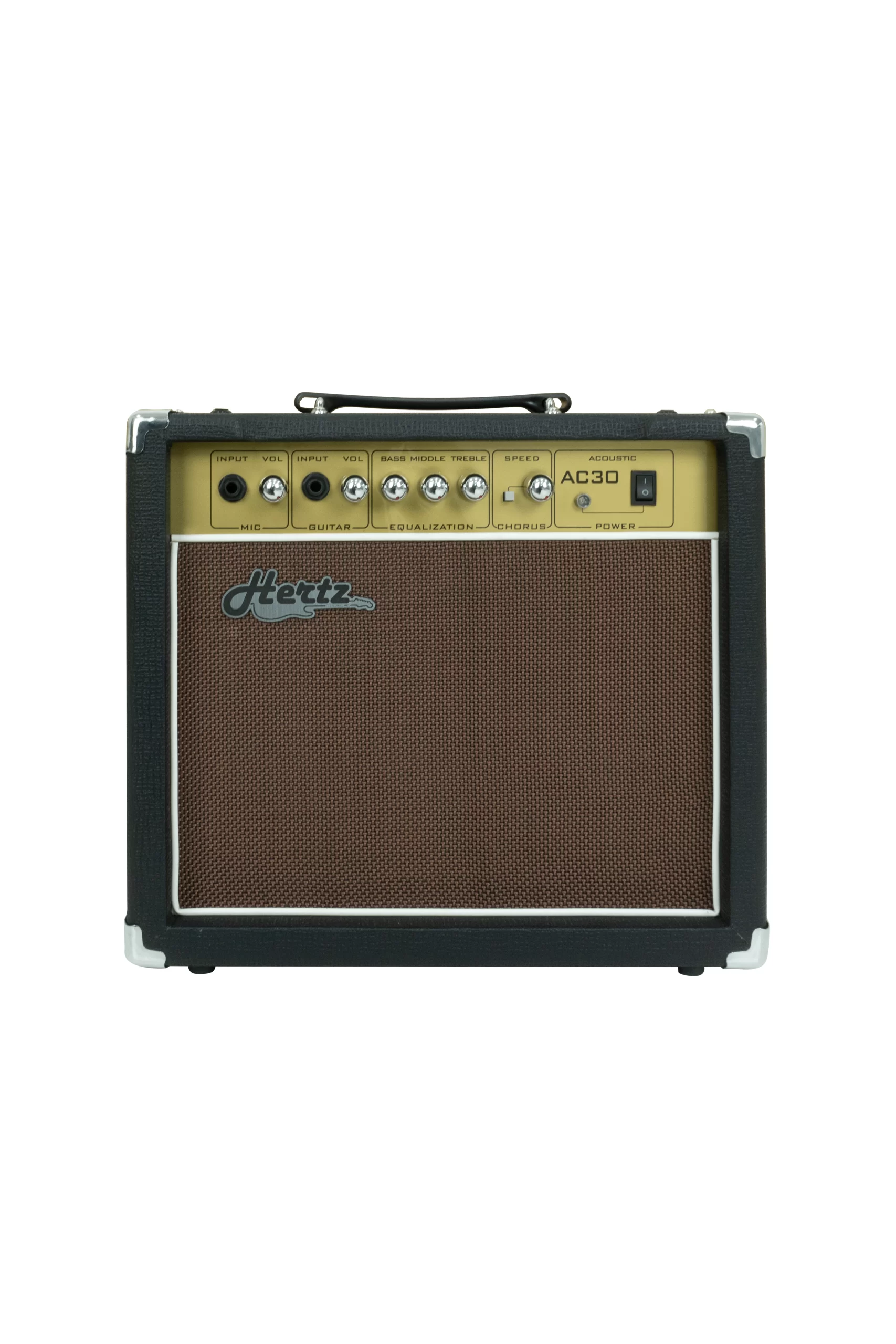 The Hertz AC-30 is a 30W amplifier built for acoustic guitars and vocals. Designed with an 8″ speaker, it offers a natural and warm tone. The built-in chorus effect enhances the depth of sound, while the 3-band EQ provides precision in tone adjustment. Ideal for acoustic performances and rehearsals.