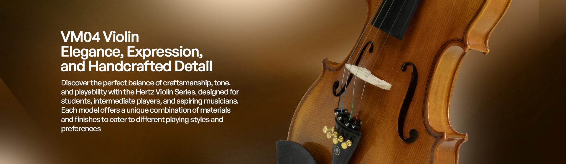 Experience refined sound and artistry with the Hertz VM04 Violin, crafted for both aspiring learners and advancing performers. With a blend of premium tonewoods and artisanal touches, the VM04 offers excellent tonal clarity, responsiveness, and timeless aesthetics.