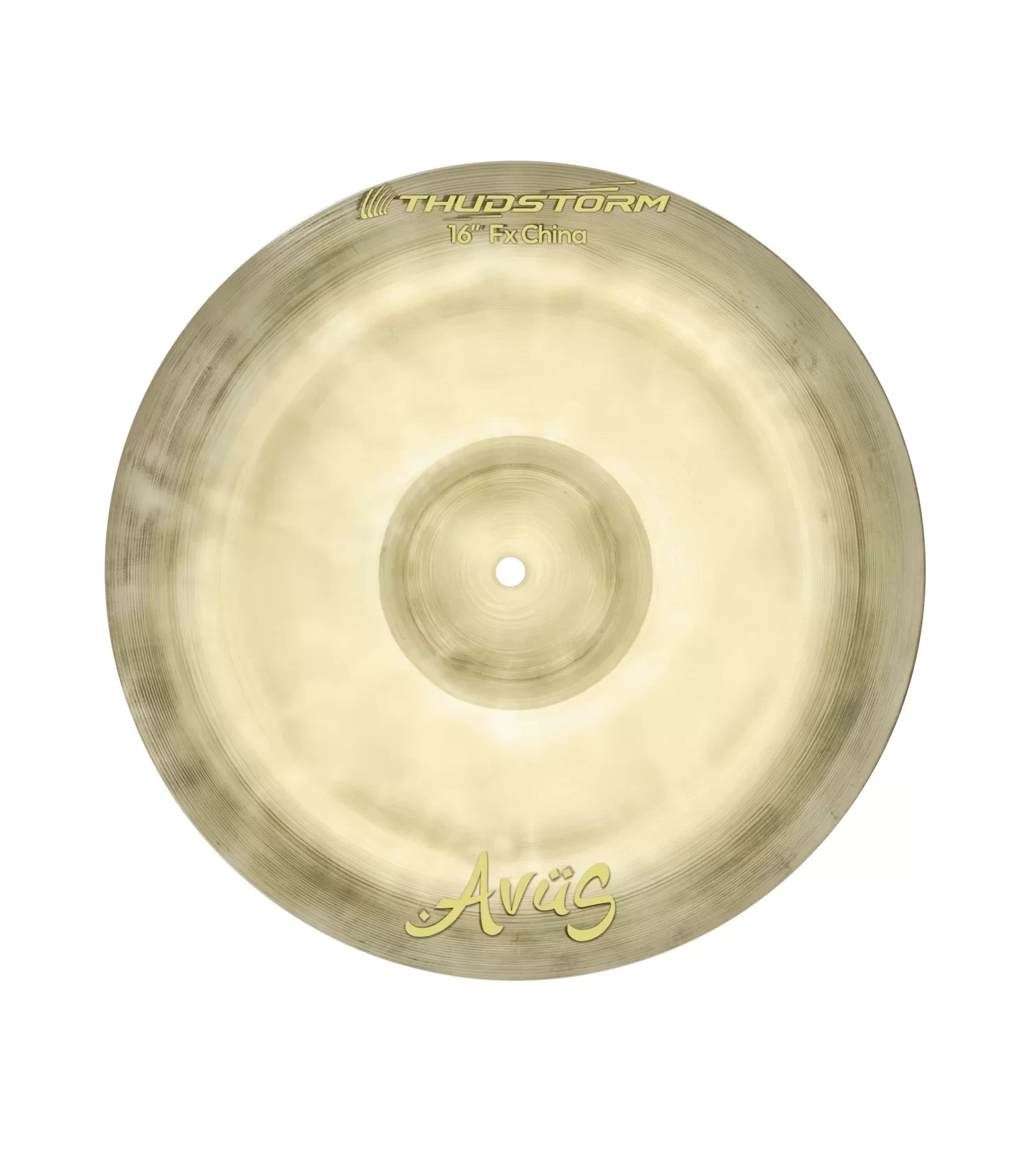 The Avus THUDSTORM 16″ China (B20 FX China) is an effects-style China cymbal crafted for heavy accenting, sharp attack, and a trashy, explosive character rather than long sustain. Using a B20 bronze alloy it sits in the professional-grade material category. As an FX China, it is designed to deliver immediate impact with minimal lingering wash-perfect for genres like rock, metal, progressive, or hybrid acoustic/electronic kit set-ups where the cymbal must cut through and then stop.