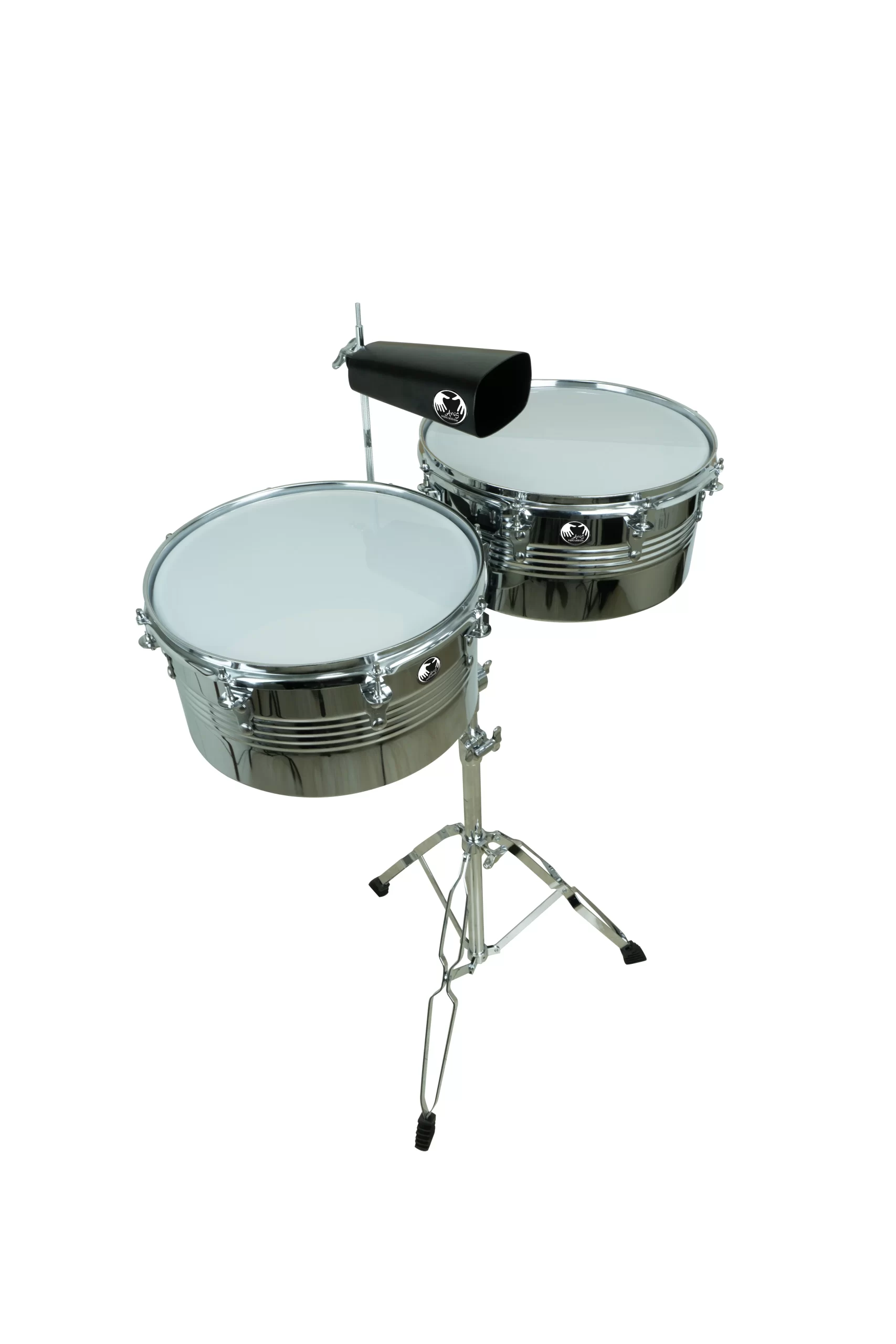 The AVUS timbale and cowbell percussion set combines rugged construction with eye-catching mirror chrome styling. The shells are made from chrome-plated steel, fitted with clear 10 mil Mylar heads for bright, responsive tone. Hardware includes a chrome-plated 8-lug configuration for stability and tuning accuracy. Available in 13″ and 14″ sizes with a depth of 6.5″, this set delivers classic timbale sound and reliable performance for rehearsals, gigs, or studio work.